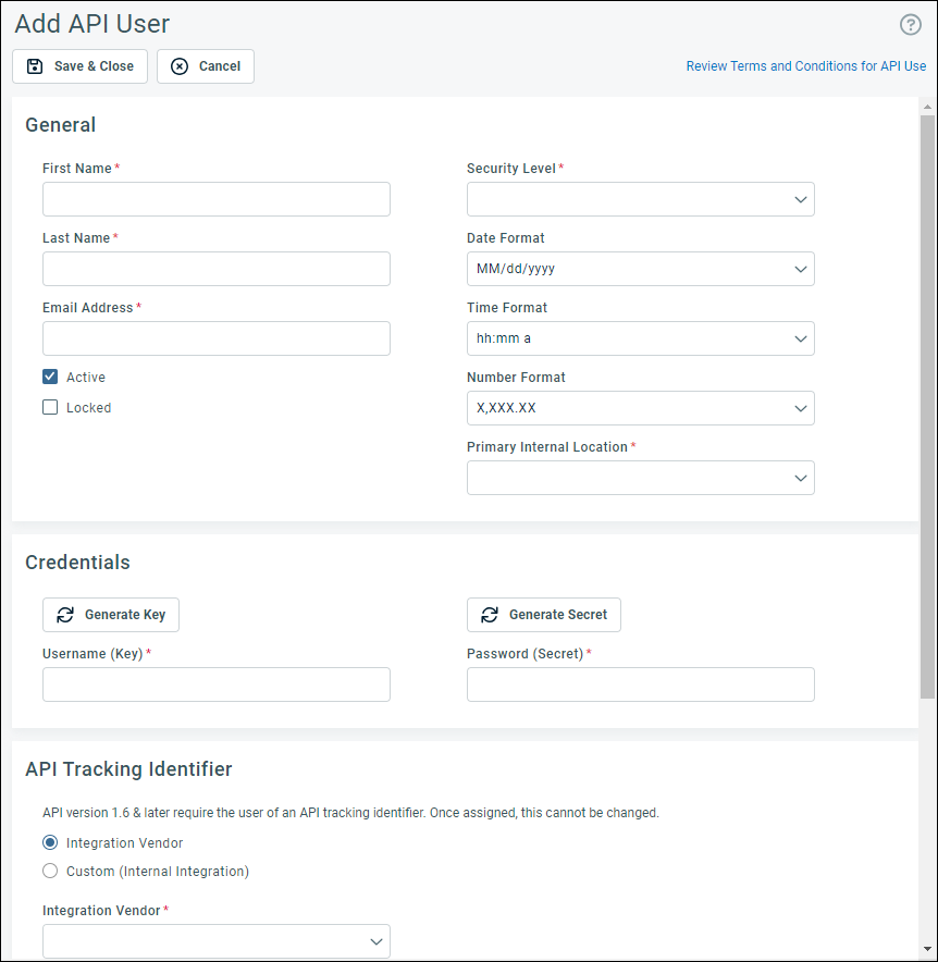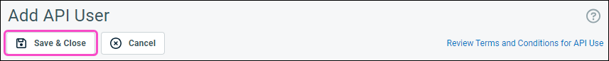 Select + New, and then select New API User: