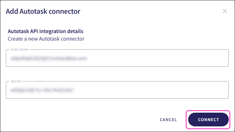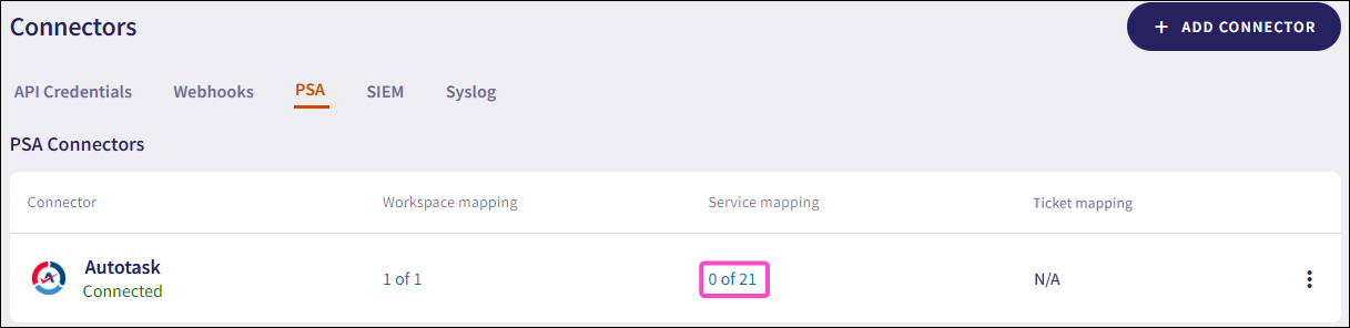 Configuring an Autotask PSA connector
