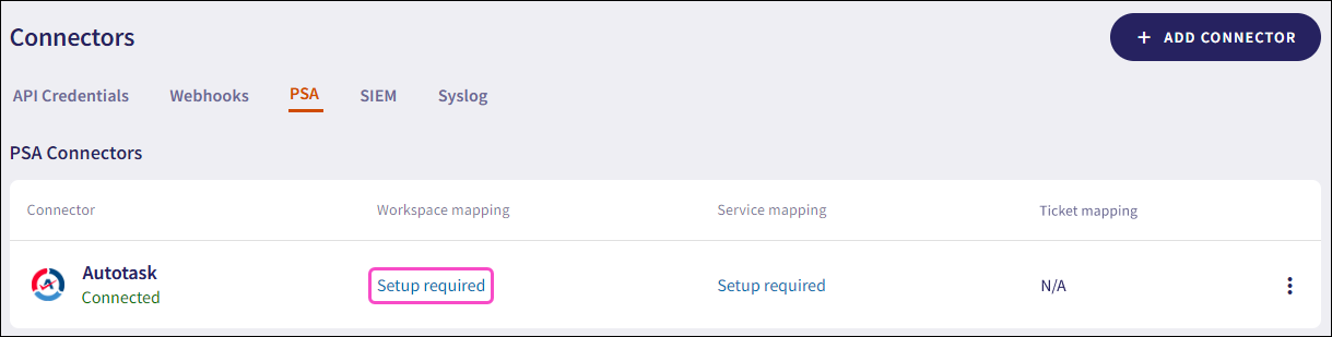 To create an Autotask PSA connector: