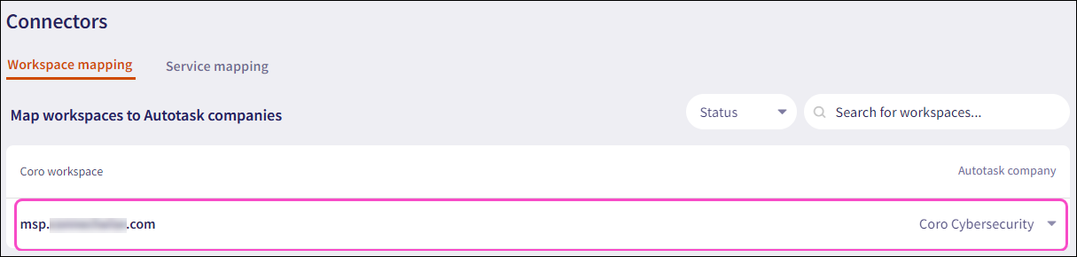 Workspace mapping links a Coro workspace to a corresponding Autotask company (account).