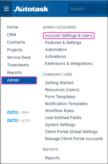 An Autotask PSA administration account.