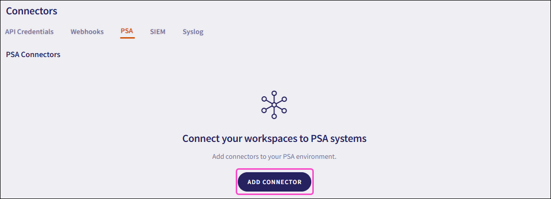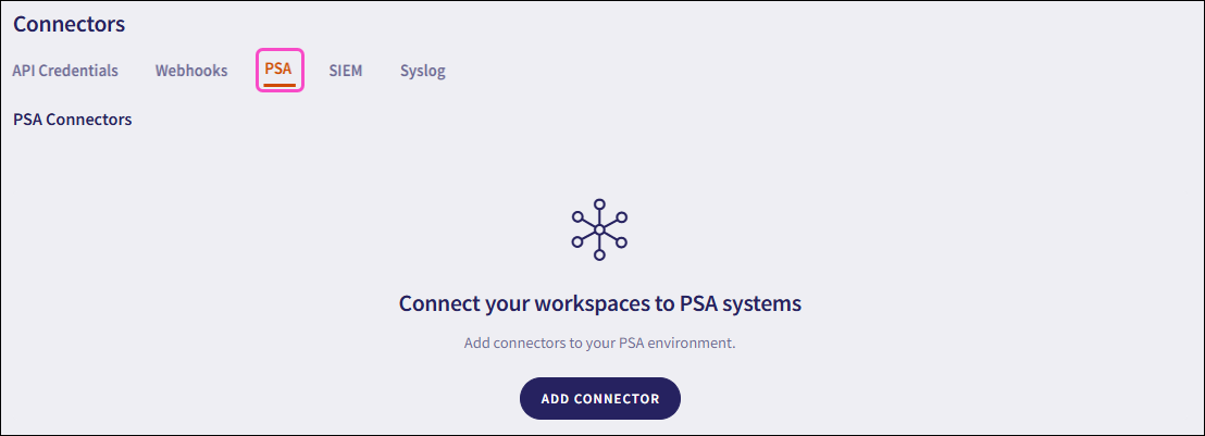 You can only configure PSA connectors in channel workspaces. For further information, see Workspace overview.