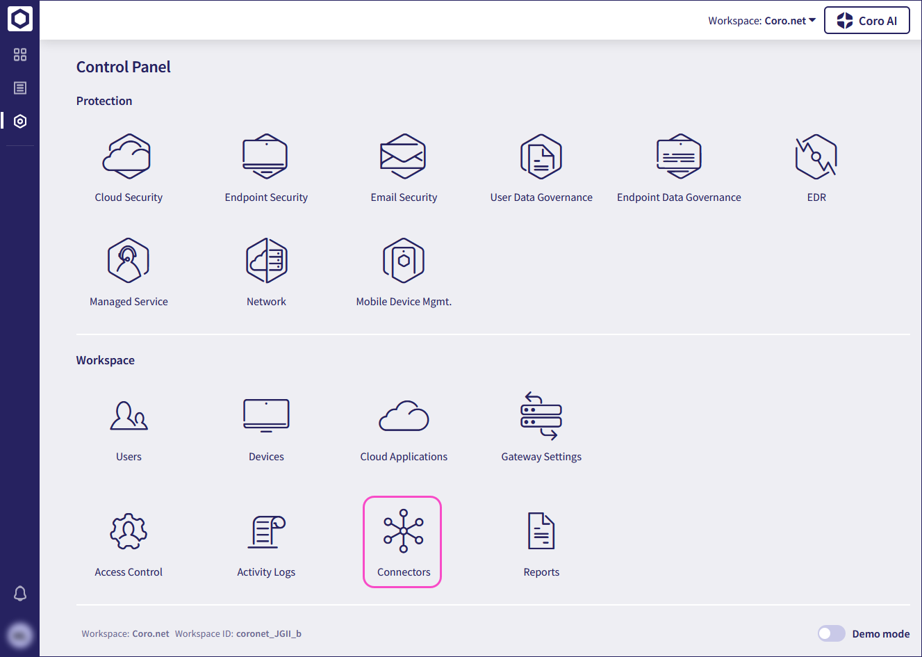 Coro displays the Connectors page.