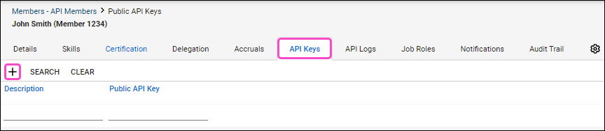 After creating an API member and assigning the minimum security roles, you can generate and retrieve the public and private keys.