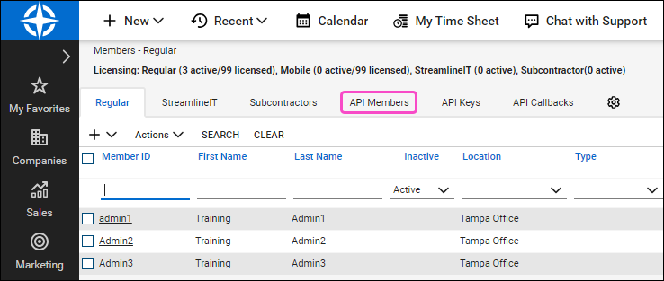Select the API Members tab: