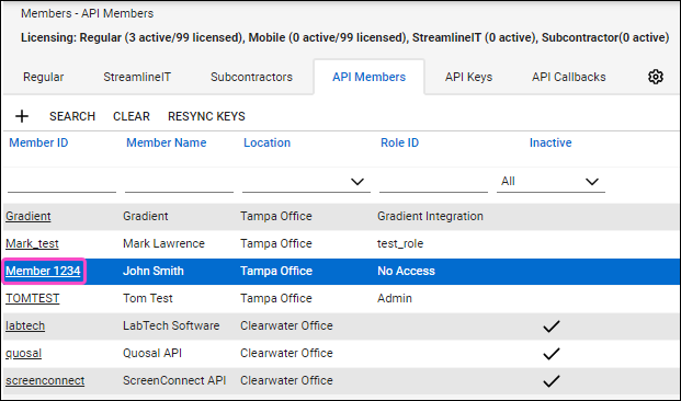Select an existing API member: