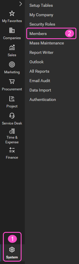 Go to System > Members: