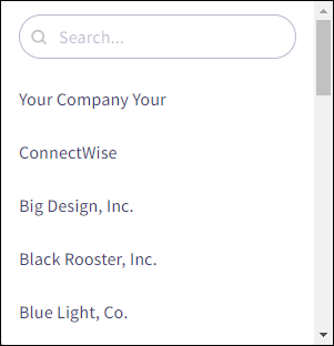 Use the search field to find the required ConnectWise company: