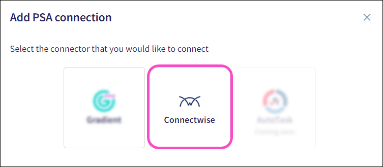 To integrate Coro with ConnectWise, a PSA connector must be configured. To configure a PSA connector: