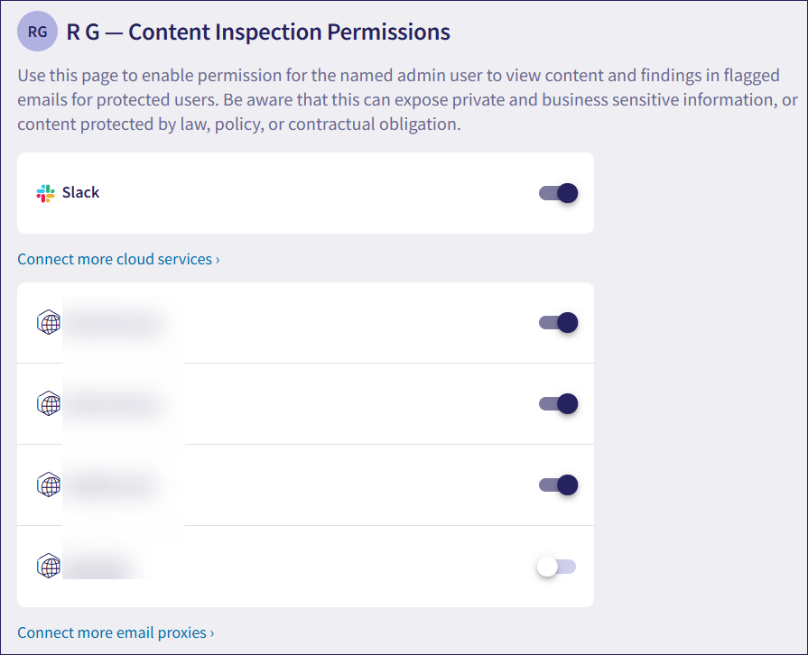 From the three-dot menu of the relevant admin user, select Content inspection permissions: