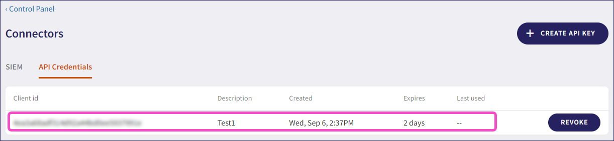 Expires: When the API credentials expire.