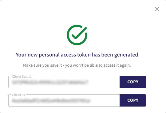ImportantEnsure that you keep a copy of your client secret, as this is the only time it is visible.