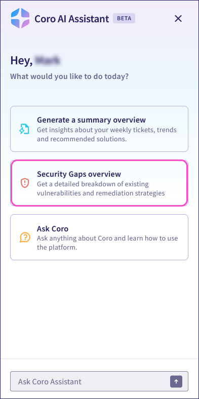 From the Coro AI Assistant panel, select Security Gaps overview: