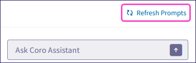 Coro AI Assistant creates suggested queries dynamically. Select Refresh Prompts to update the available prompts based on the previous response.