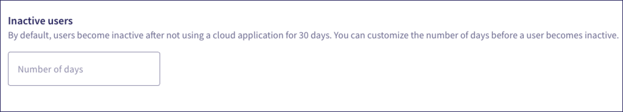 By default, a user becomes inactive after the user has not had any activity for 30 days. Examples of an activity include downloading files, deleting files, signing in, and adding someone as an admin.