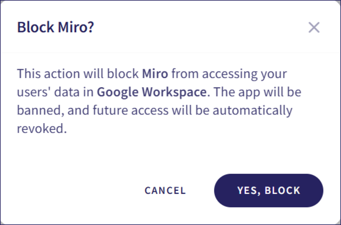 Locate the third-party application, and then select the adjacent BLOCK: