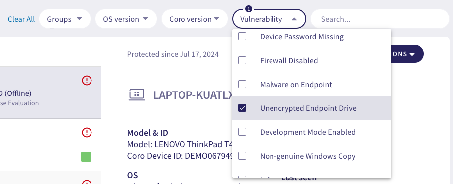 In the Vulnerability dropdown, select Unencrypted Endpoint Drive: