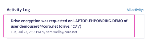 ImportantWhen a device user decrypts a drive, Coro removes the recovery key from the expanded Drives section.