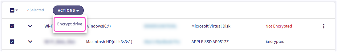 Admin users and MSP admin users can also encrypt individual drives from the Devices page.