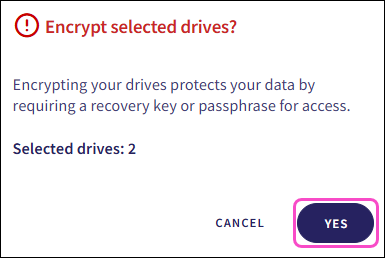 Verify your drive selections and then select YES to activate encryption for the selected drives: