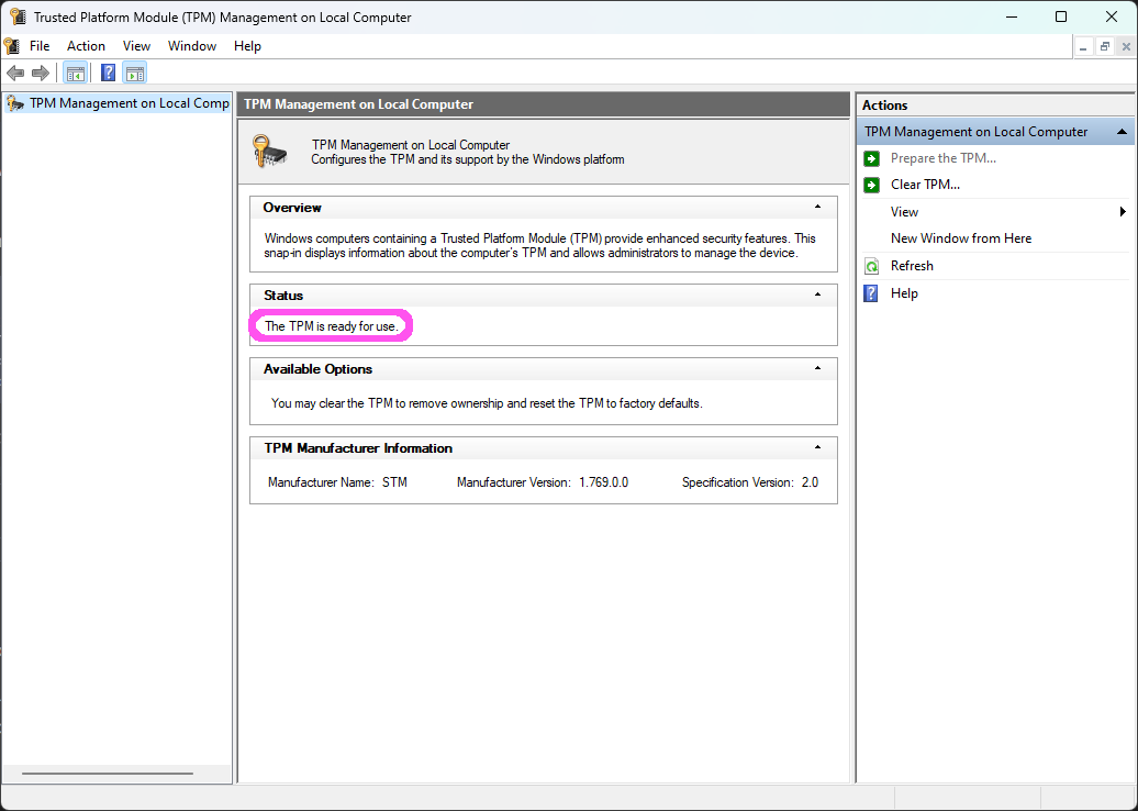 If your TPM is enabled and functioning: