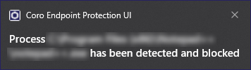 When a blocked process attempts to execute on a device, the Coro Agent displays a notification to alert the user: