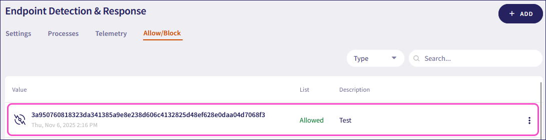 | Allow process | Prevents EDR ticket generation by marking the non-system process as safe. Related process information is not collected in the EDR Telemetry and Process tabs. |