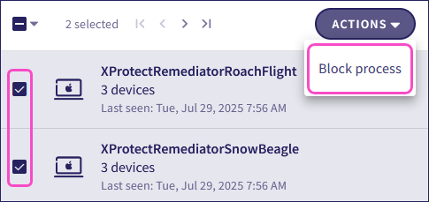 For further information on blocking processes, see EDR Allow/Block lists and Endpoint Security Allow/Block lists.