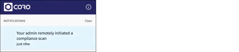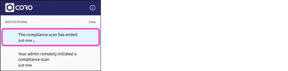 After a scheduled scan is activated, the Coro Agent displays a notification in the desktop app: