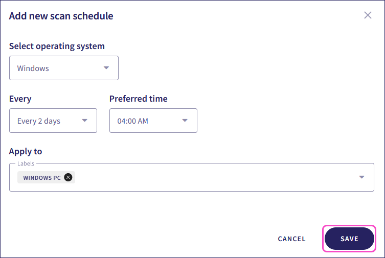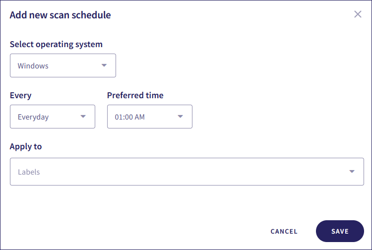 Apply to: Select the device labels to apply the scheduled scan to specific groups of devices.