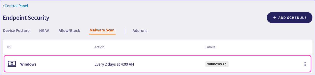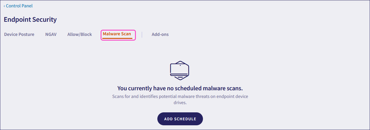 If a device is offline during a scheduled scan, Coro automatically starts the scan when the device reconnects to Coro.