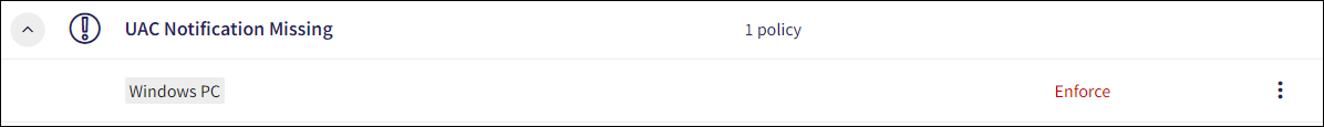 Select the dropdown next to UAC Notification Missing on the Device Posture tab to view the policy. See Device posture configuration overview.
