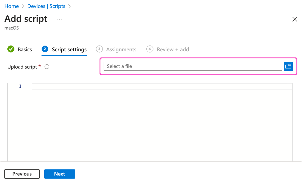 Select Next to continue to the Script settings step.