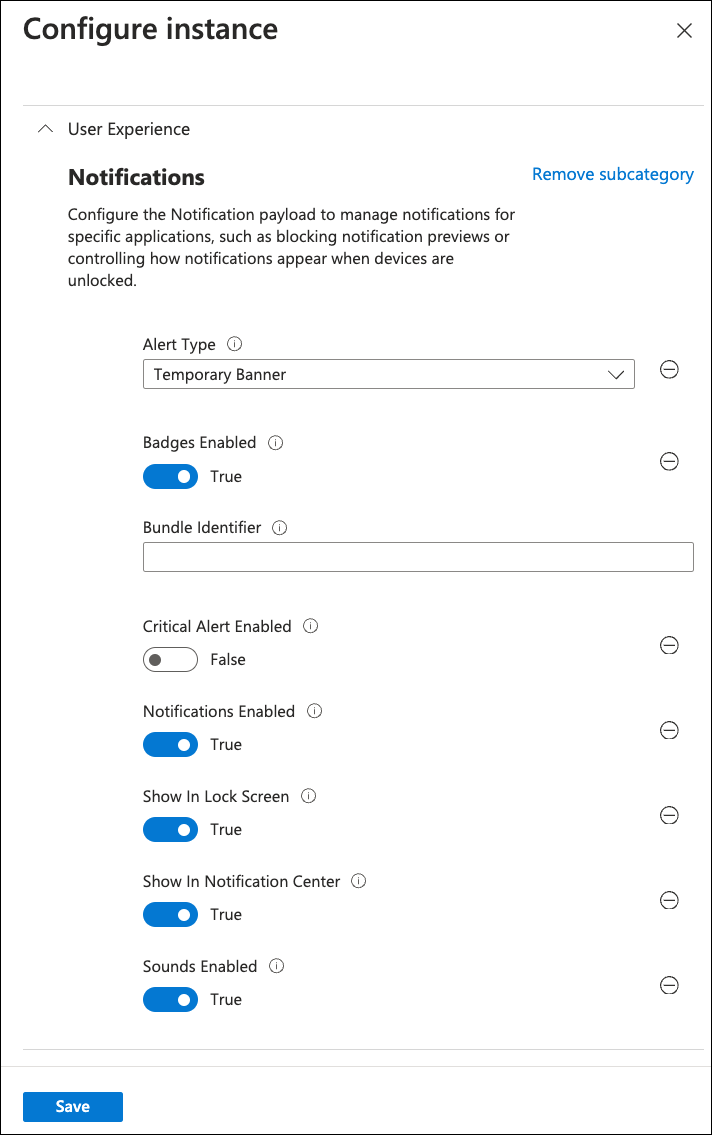 Intune displays the Configure instance dialog:
