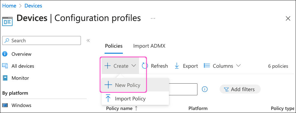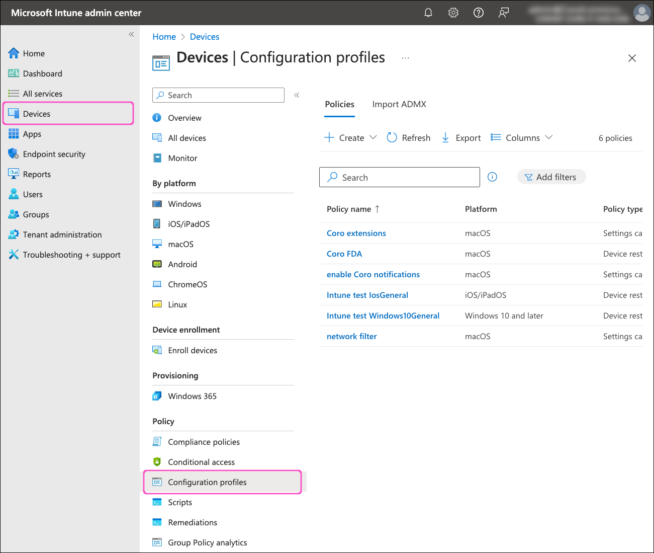 Go to Devices > Configuration profiles: