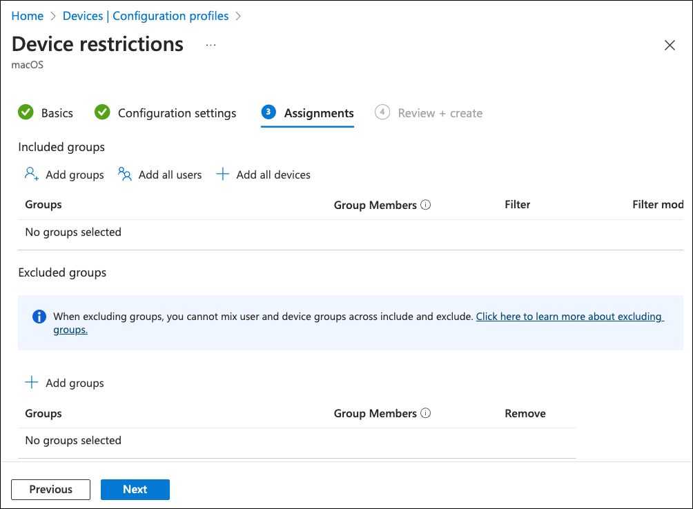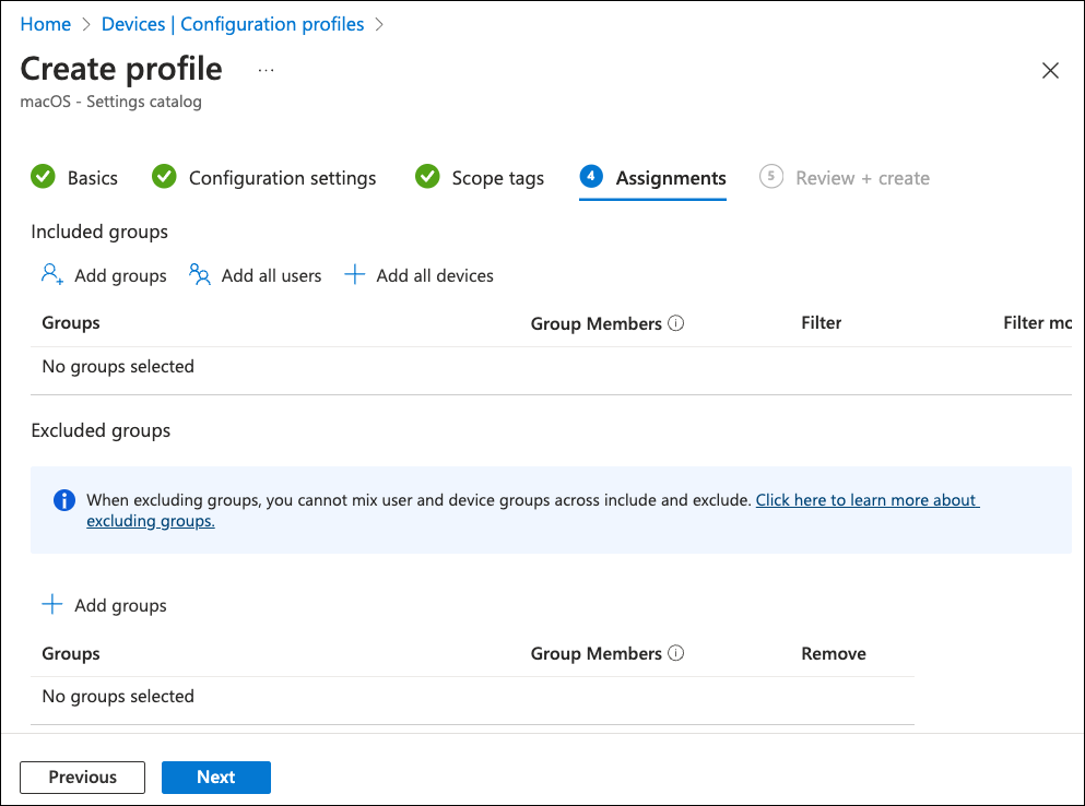 Select Next to continue to the Assignments step: