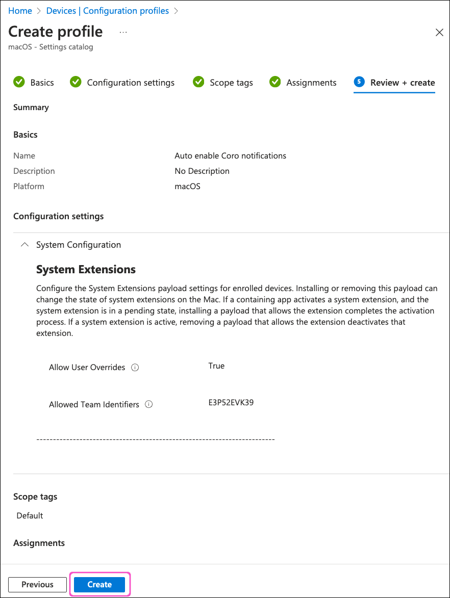 Deploying a configuration profile to automatically enable Coro notifications