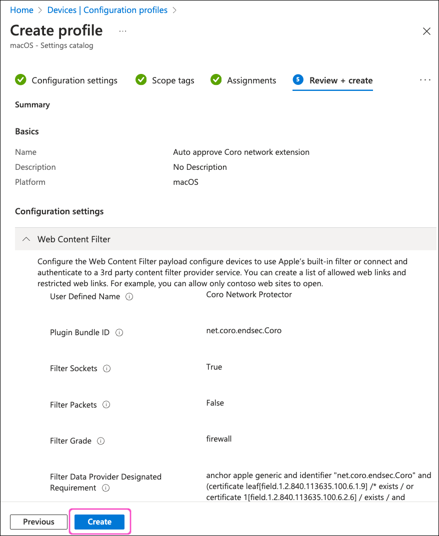Deploying a configuration profile to automatically approve Coro Network Filter extension