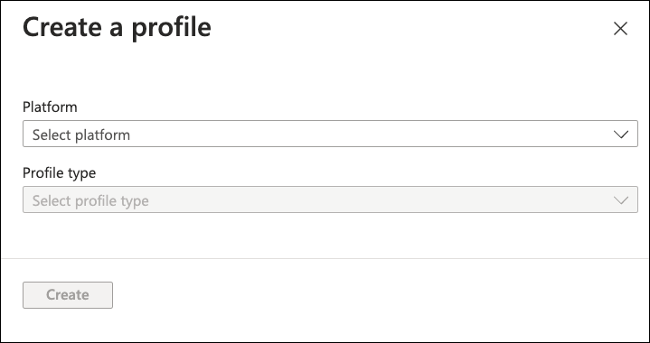Intune displays the Create a profile dialog: