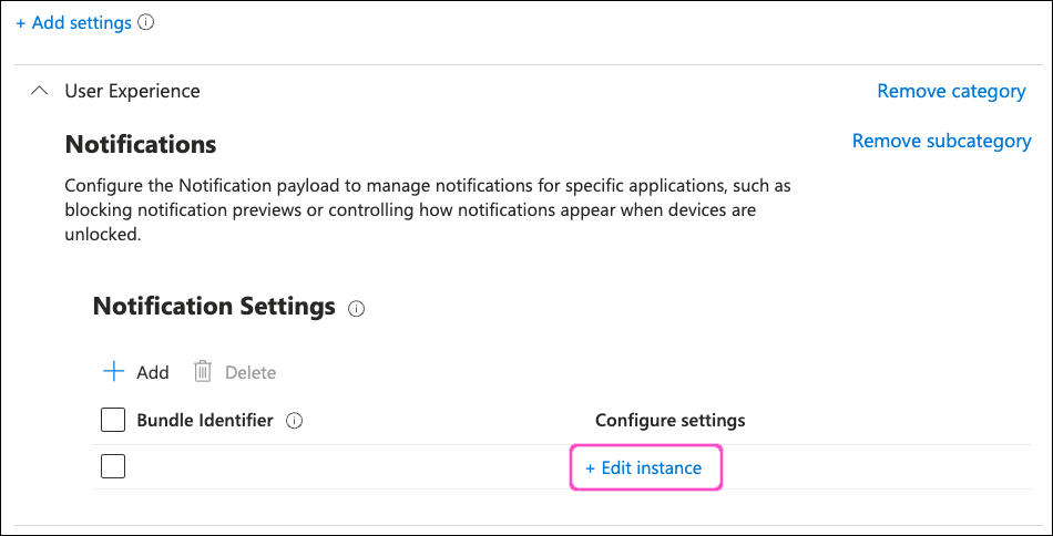In the Notification Settings section, select + Edit instance: