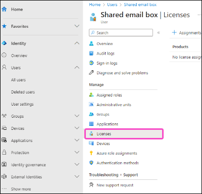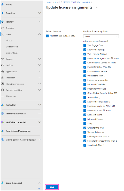 Verify your shared mailbox is appropriately licensed by Microsoft 365
