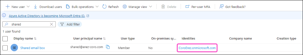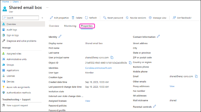 After verifying your shared mailbox is appropriately licensed by Microsoft 365, synchronize the shared mailbox from the Coro Environment.