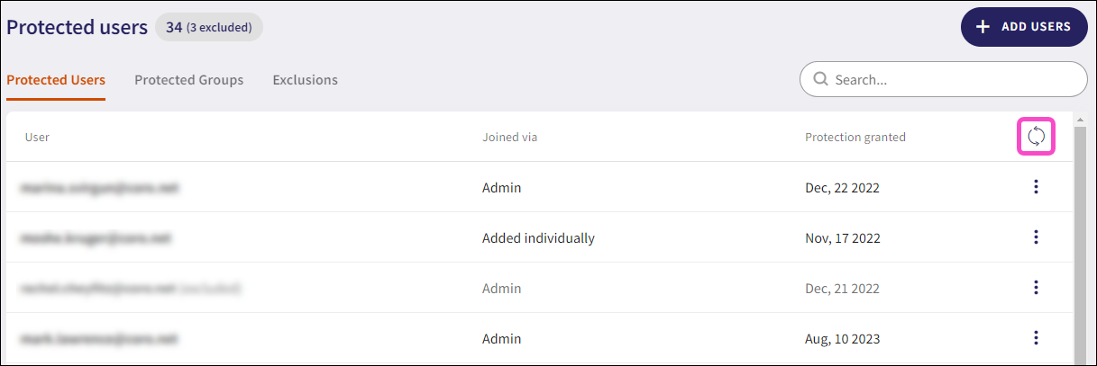 If you have already added protection to all users or if the shared mailbox is a member of a protected group, select Sync from the Protected users or Protected groups tab: