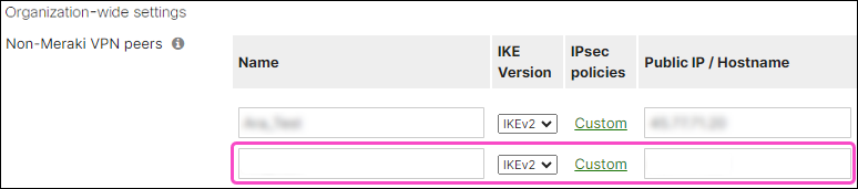 Cisco Meraki adds a new row to the Non-Meraki VPN peers table: