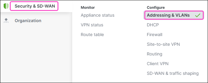 Go to Security & SD-WAN > Addressing and VLANs: