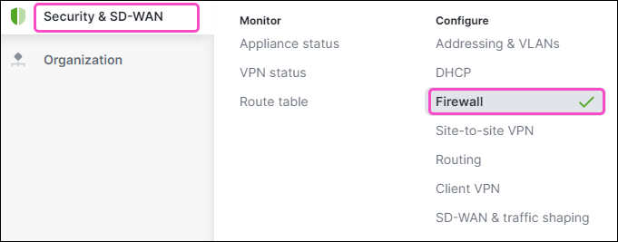 Go to Security & SD-WAN > Firewall:
