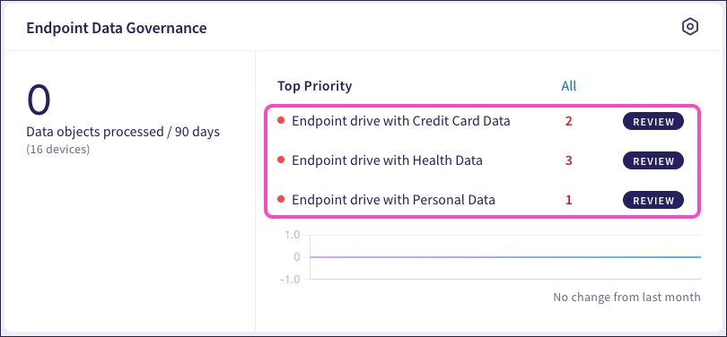Through these panels you can identify and prioritize areas of concern, such as sensitive data exposure. This helps to ensure that security incidents are quickly addressed and resolved, and that sensitive information is being protected consistently and effectively. Use the information provided in the Actionboard as part of an overall strategy in raising awareness among your users of the importance of protecting sensitive information.