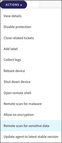 Select the Actions menu, then select Remote scan for sensitive data: