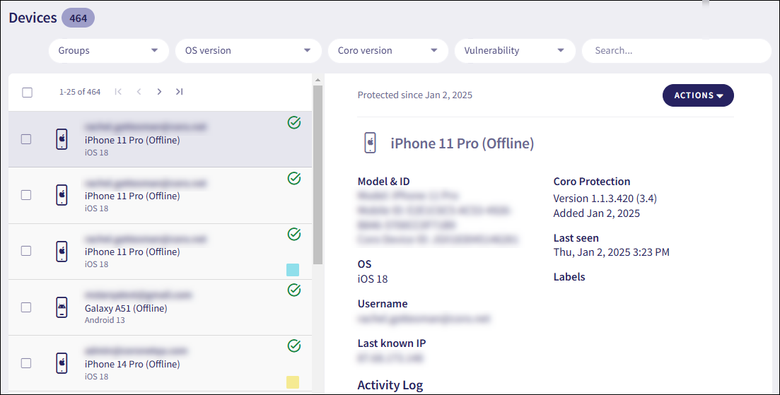 - Suspend user from all cloud apps: Temporarily suspend the user from all Coro-protected cloud applications.