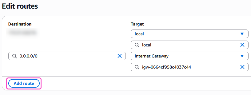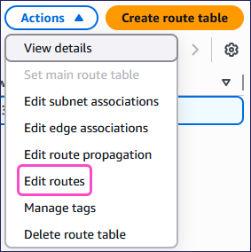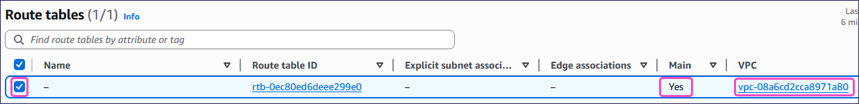 From the Your VPCs page, select Route tables from the Virtual private cloud section and then select your route table.